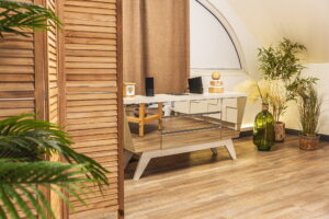 Le mobilier ergonomique épouse les besoins des professionnels nomades : bureaux spacieux, éclairage modulable, prises multiples et espaces de rangement optimisés. Chaque détail technique s’efface pour ne laisser place qu’au bien-être et à l’efficacité.